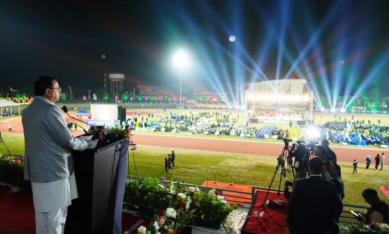 मुख्यमंत्री ने प्रसन्नता व्यक्त की कि इस वर्ष प्रतियोगिता में देशभर के 42 राज्यों और केंद्रशासित प्रदेशों से 3390 खिलाड़ी, जिनमें 700 से अधिक महिला खिलाड़ी, भाग ले रही हैं। उन्होंने सभी खिलाड़ियों को शुभकामनाएं देते हुए कहा कि खेल केवल शारीरिक तंदुरुस्ती का माध्यम नहीं, बल्कि व्यक्तित्व विकास और राष्ट्र निर्माण का भी आधार हैं।